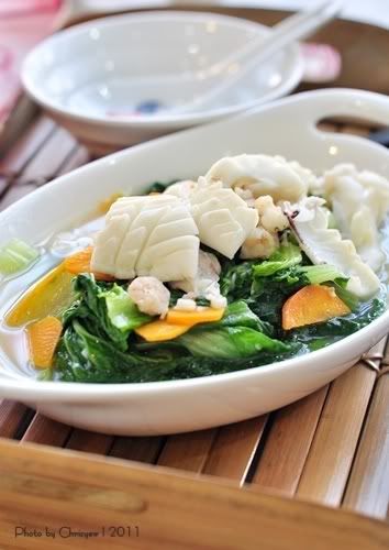 炒有机蔬菜 美丽的sotong切割是老公的杰作噢