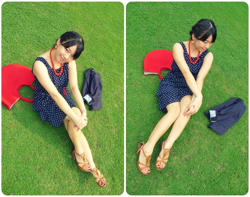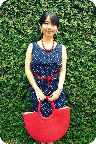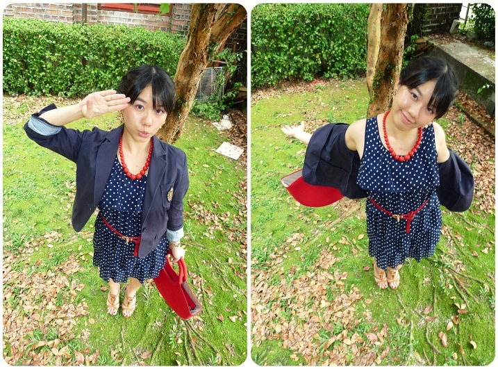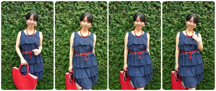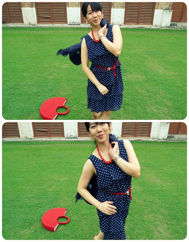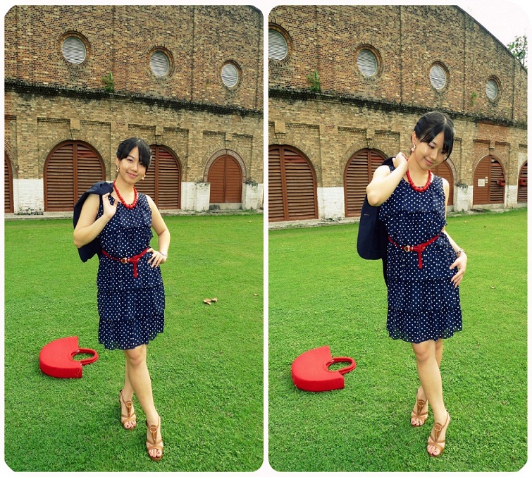 和红色皮革金属细腰带亦有着相呼应的协调感。