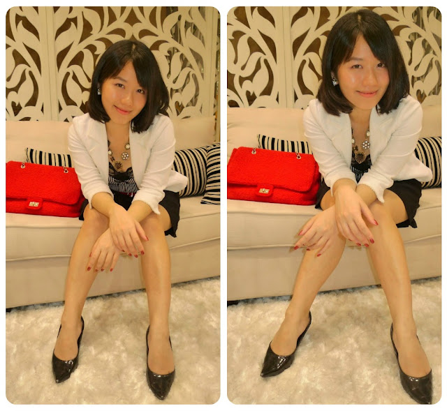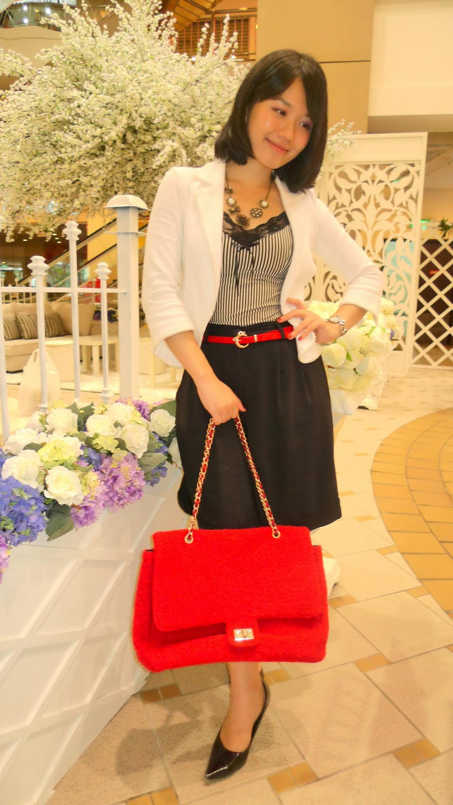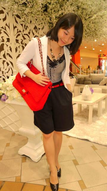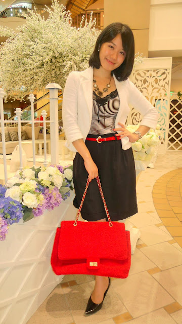 黑白红的搭配法,个性中流露出小女人的优雅品味,