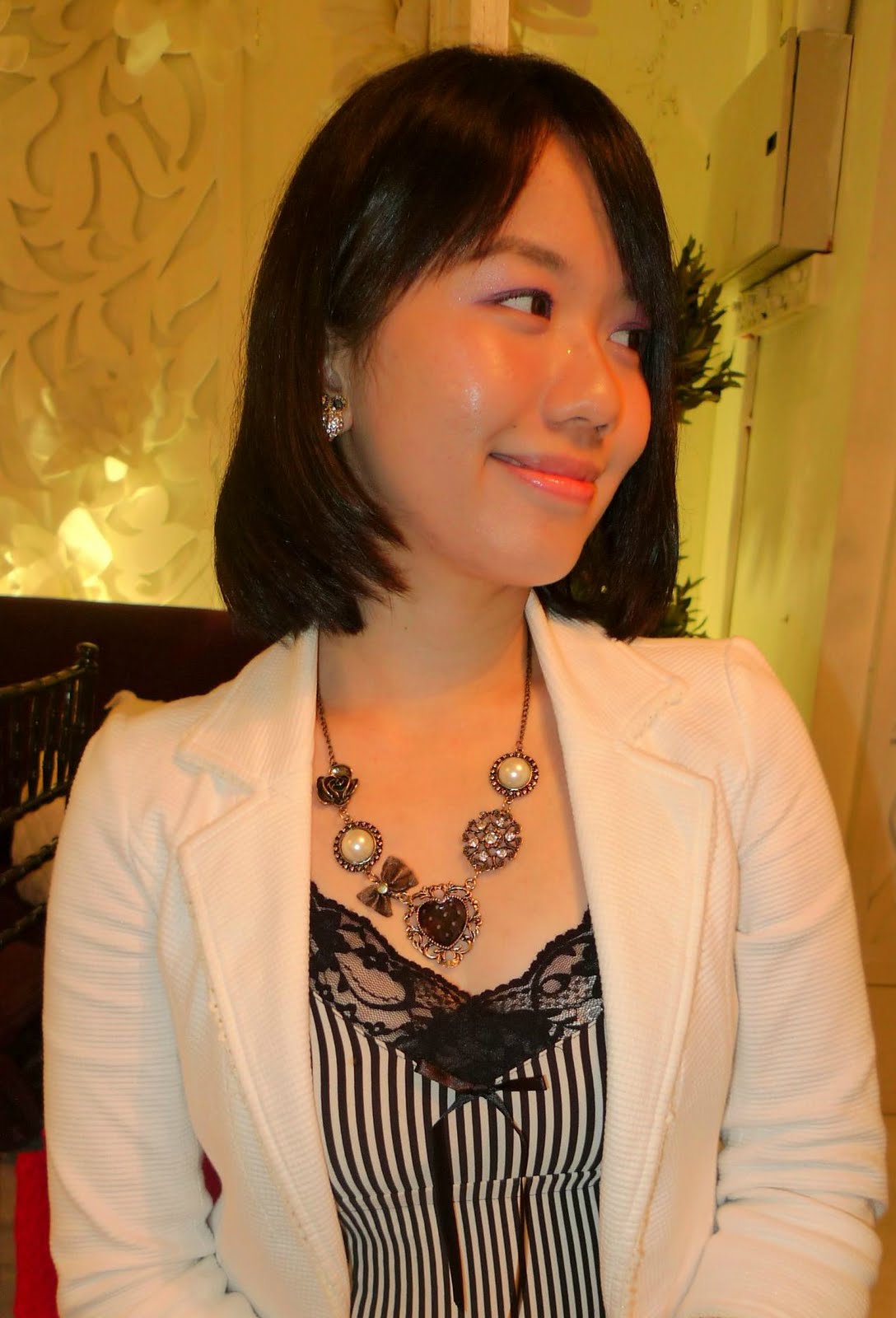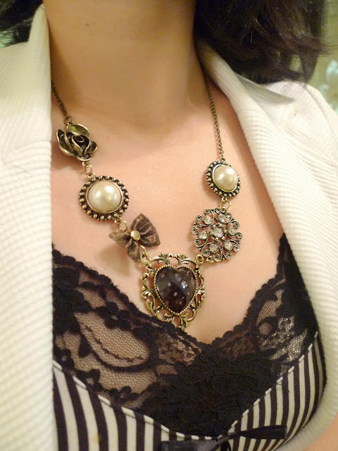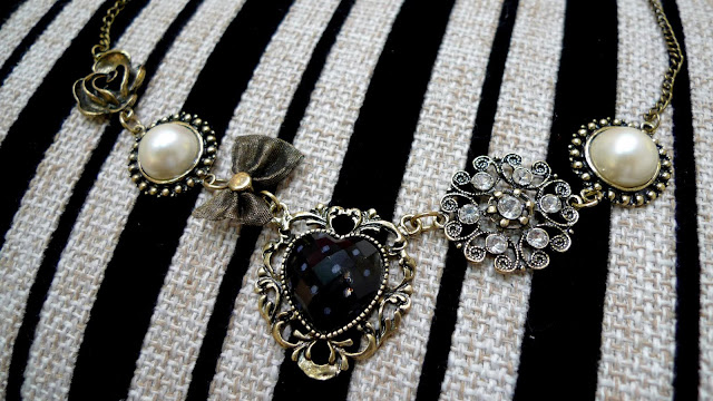 网购的维多利亚复古风项链,铜色系的设计和整体的打扮相呼应。