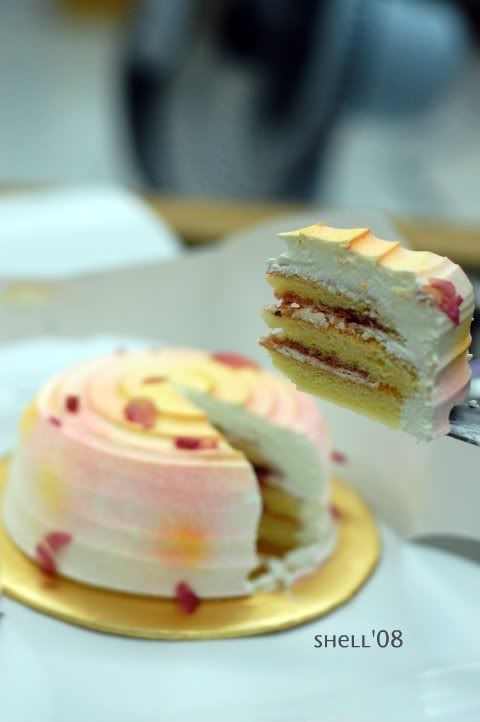 我只有喝过玫瑰花茶,正在想象玫瑰蛋糕的味道。。