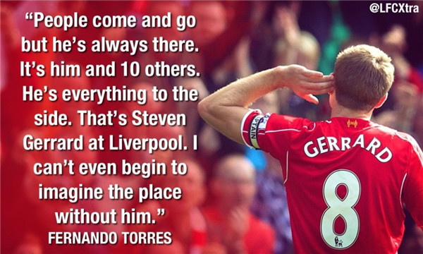 “像杰拉德那样率领这支球队那么长时间,还肩负起球队形象大使的角色,那真是令人不可思议。对我来说,利物浦阵容中永远都有杰拉德的一席之地。即便有一天他离开了利物浦,但我相信几年后这里也会提供职务让他回来。”