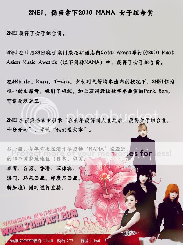 2NE1,稳当拿下2010 MAMA 女子组合赏