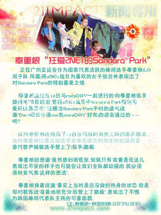 奉重根 "狂爱2NE1的Sandara Park"