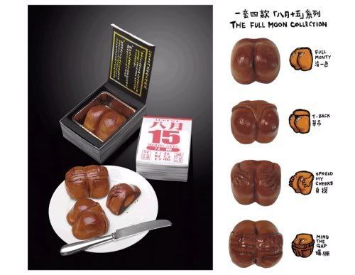 香港“×华饼家”最新推出的月饼“八月十五”系列,全套四款,为四个“八月十五”状的月饼(粤语“八月十五”意为“屁股”):