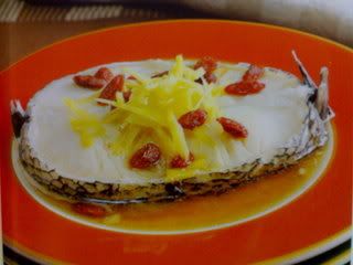 2)把调味料拌匀后淋在鱼面上 ,在撒上姜丝鸡枸杞然后