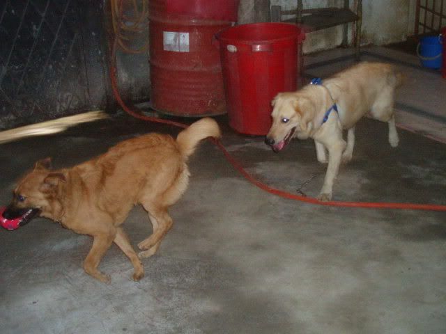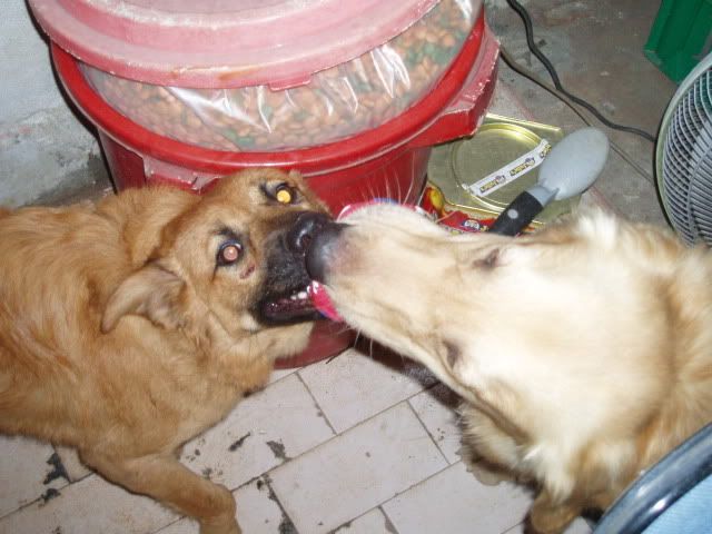 最近这两只笨狗好像会争风吃醋了。。。。 |