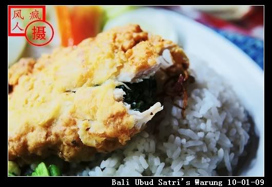 差不多一样,大约150千,可是一定要预定,因为烹煮很花时间,但是我可以告诉你,香蕉鸡是我在巴厘岛吃到最美味的食物。。 |