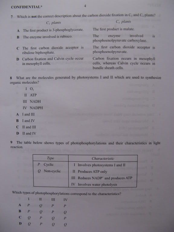 那些东西一定要记起来,因为还蛮重要的。 比方说,calvin cycle, kreb's cycle 都很重要的。photosynthesis 的 cycle 在哪里会产生 ADP, NADPH, 之类的问题。