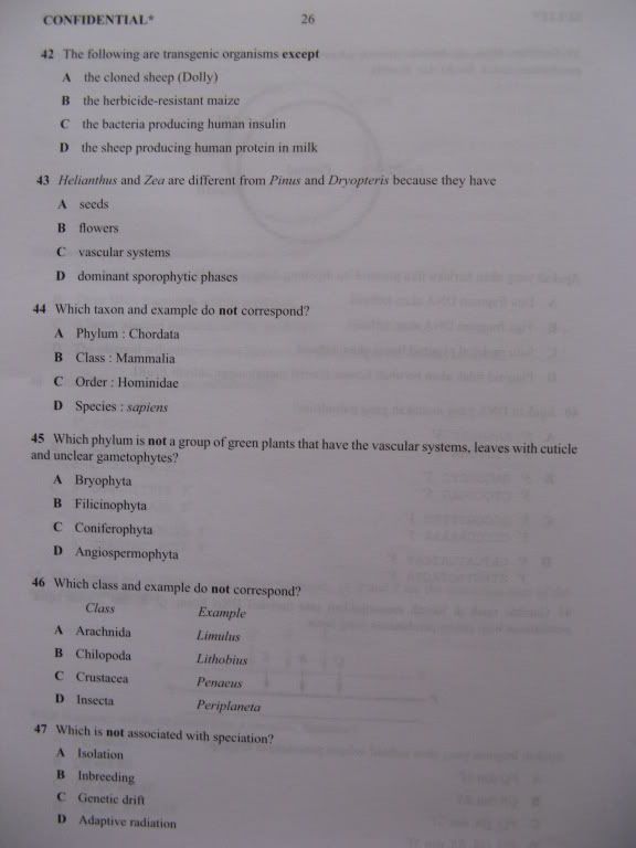 Essay那一部分,只须找一下参考书,不会难倒大家的。所以我不post上来咯。Essay的答案很长,若有人volunteer做做看,当然最好啦!