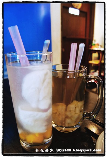 由于饮料不包含我买的voucher内,我们另外order了芦荟苹果薄荷【RM6.00】和香椰玉米汤圆【RM4.80】。芦荟苹果薄荷绝对是纯正的因为芦荟和苹果薄荷是养心殿在自家后院种的,完全人工培植和有机的哦。这杯饮料味道方面,其实不怎么甘甜或好味道但只有真正用苹果薄荷熬出来才是这个味道嘛,绝对不是薄荷剂的味道。
