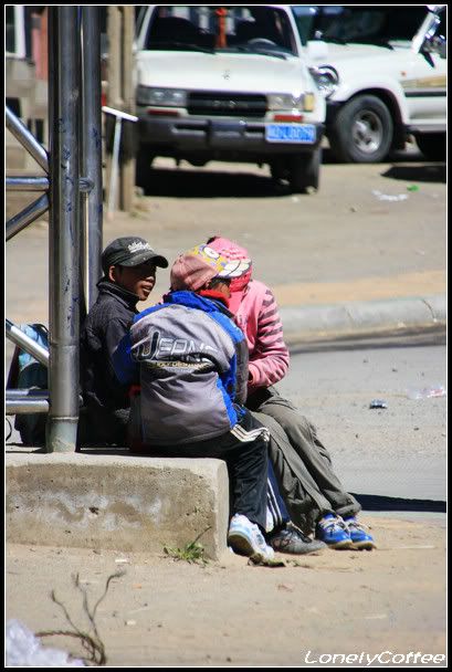 我们的导游告诉我们,他小时候也是这样子,一大班朋友在外向游客讨东西。