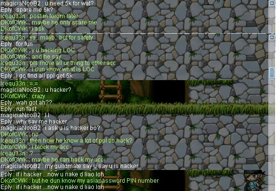 不是这样的,其实eply是个骗子.最后他说他只是要kacau我们而已,然后他还跟我说sry.这个我已经在guild chat里面说了嘛~ |