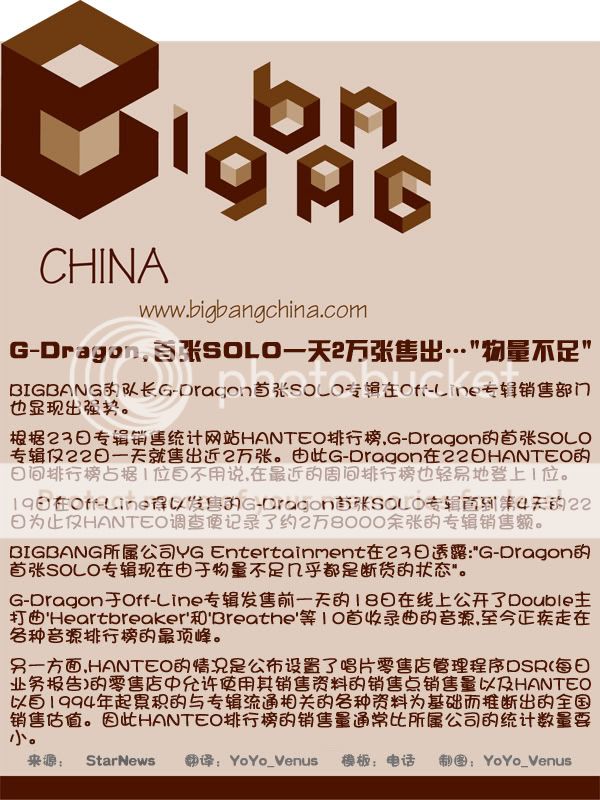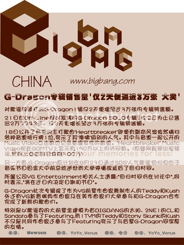 G-Dragon专辑销售量‘仅2天便逼进3万张 大卖’