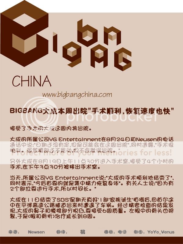 BIGBANG大成本周出院“手术顺利,恢复速度也快”