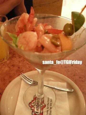 我們點一個优惠特餐加一個沙律 开胃菜单有6种选择,在buffalo wings和martini shrimp之间我们选了这个~ 看起來夠誘人吧 ! 蝦子都蠻大只,酸酸甜甜的真的很開胃哦!