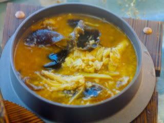 2)烧热麻油 ,爆香姜丝 ,加入木耳 ,再打入蛋炒熟 .最后加入红酒略滚即可 .