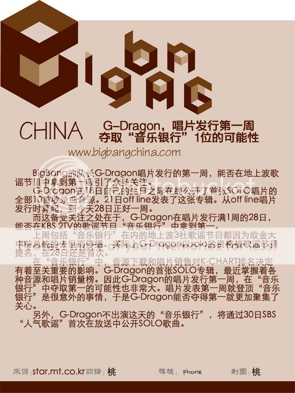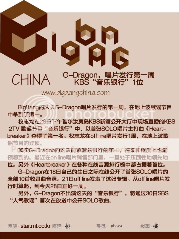 G-Dragon,唱片发行第一周KBS“音乐银行”1位