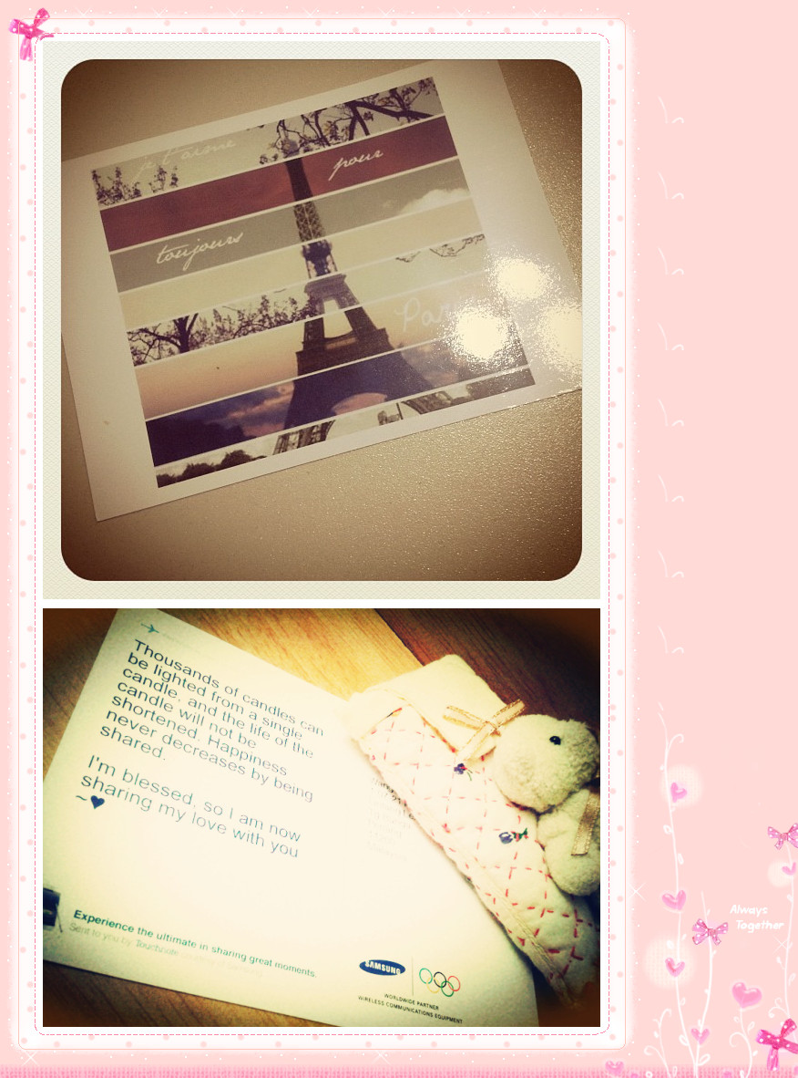 我呢,就比较喜欢真实感,所以选择发明信片给朋友,让朋友们可以收藏,看到的时候,还能“顺便”想起我 (我的心机很重吧 =P )