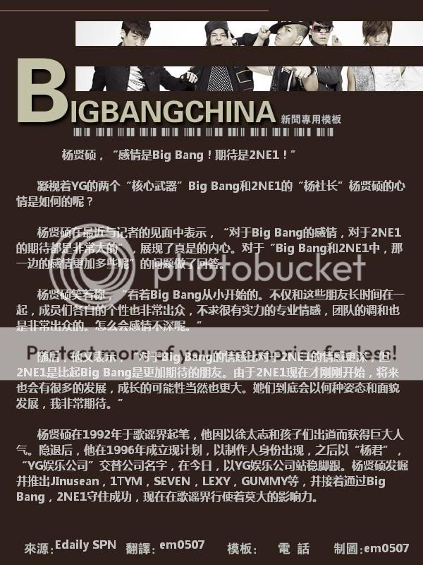 杨贤硕,“感情是Big Bang!期待是2NE1!”
