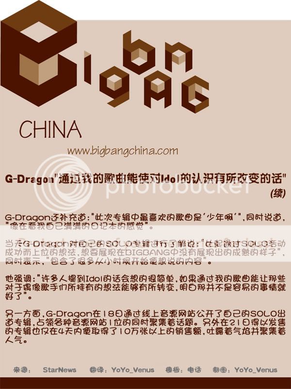 G-Dragon“通过我的歌曲能使对Idol的认识有所改变的话”
