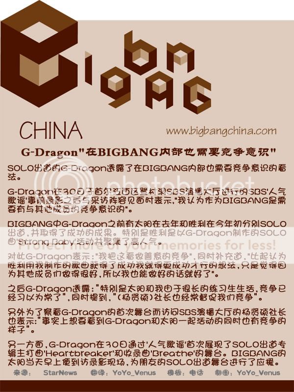 Meanwhile, GDragon also wrote on his me2day, “I’m working hard and filming for a MV now. If you wait for a while more, you can see it too. I will work hard.”