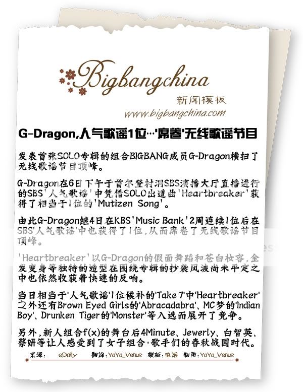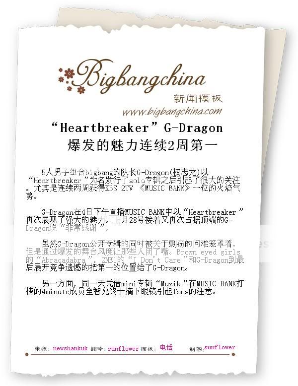 “Heartbreaker”G-Dragon爆发的魅力连续2周第一
