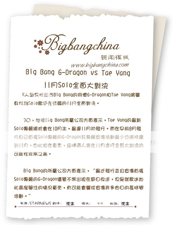 Big Bang G-Dragon vs Tae Yang,11月Solo全面大对决