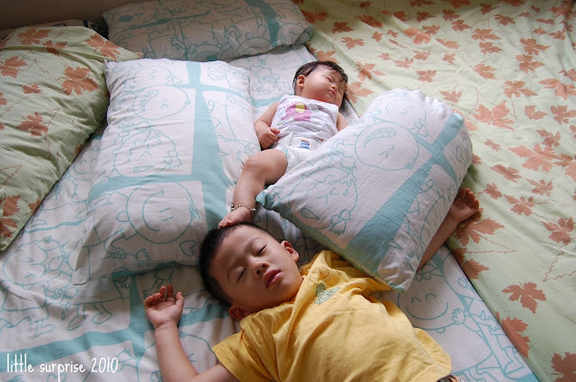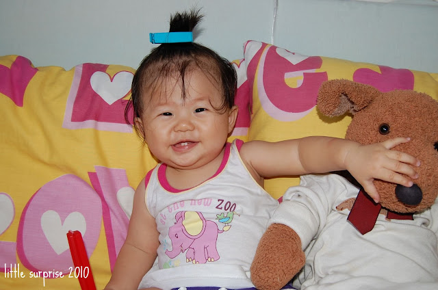 就不知道等小惊喜长大,会合他抢玩具时,他还会不会sayang她!!