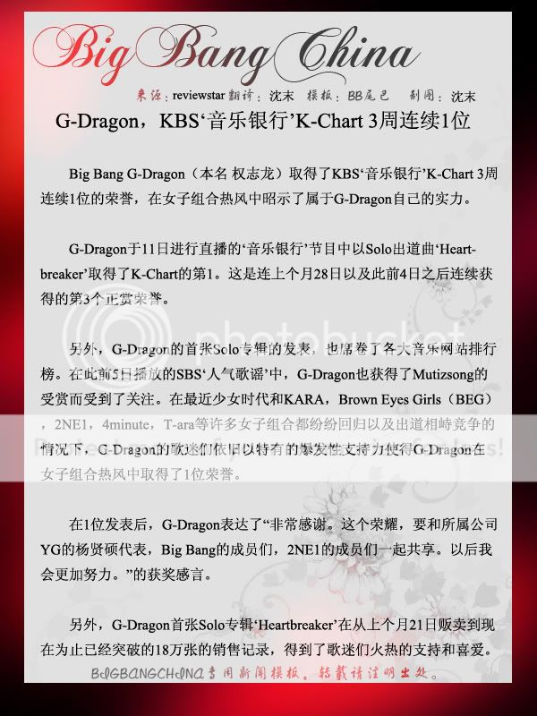 *G-Dragon is planning on continuing his activities for his first solo album atleast until November; Taeyang is planning to release his second solo album in late October, or early November. There is a possibility that they will perform together on the year-end performances. http://star.mt.co.kr/view/stview.php?no=20...1&outlink=1