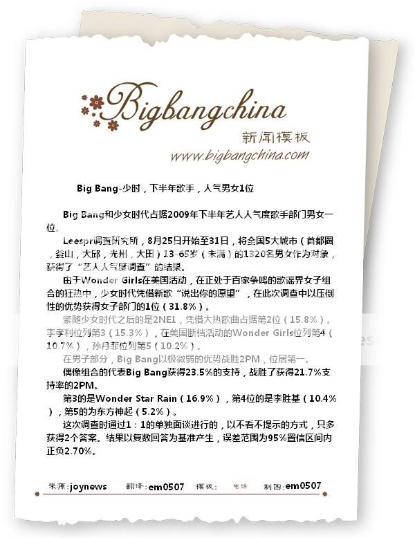 On music site Monkey3 (www.monkey3.co.kr), a survey was done from 4th till 10th September on the question of “Male celebrity you want to make as a butler?” and GDragon came in #1 with 243 votes (34%).