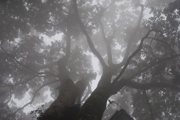 早上七点我们草草吃了早餐就出发了。 山脚的雾气非常重, 我们基本上什么都看不见。