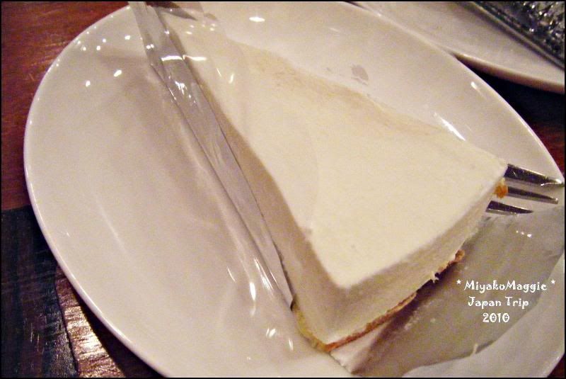 走啊走,看到一家在二楼的CAFE HOUSE,我们直接就上去。 好开心,终于找到空位休息。叫了阿嫂来写单,我们指了四杯茶, 可是阿嫂说一定要点吃的。哎呀,已经坐了下来, 我们只好点两个蛋糕加四杯茶。一个蛋糕350日圆。
