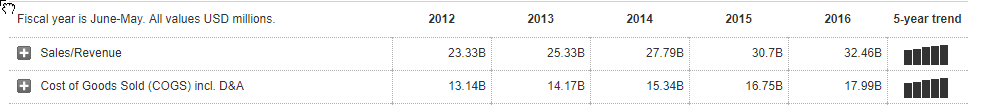 Nike2012-2016年营业额