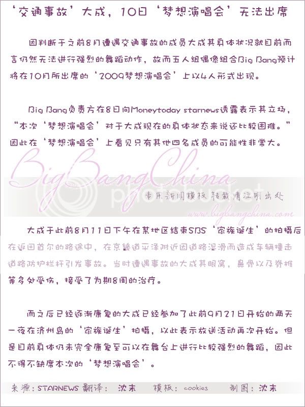 大成的伤还没完全好, 却坚持要去参加梦想演唱会..很感动的精神呢.