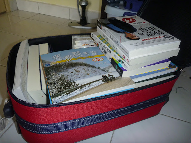 在台湾买的书,用行李箱扛回来的,这样大的行李箱能够装大概