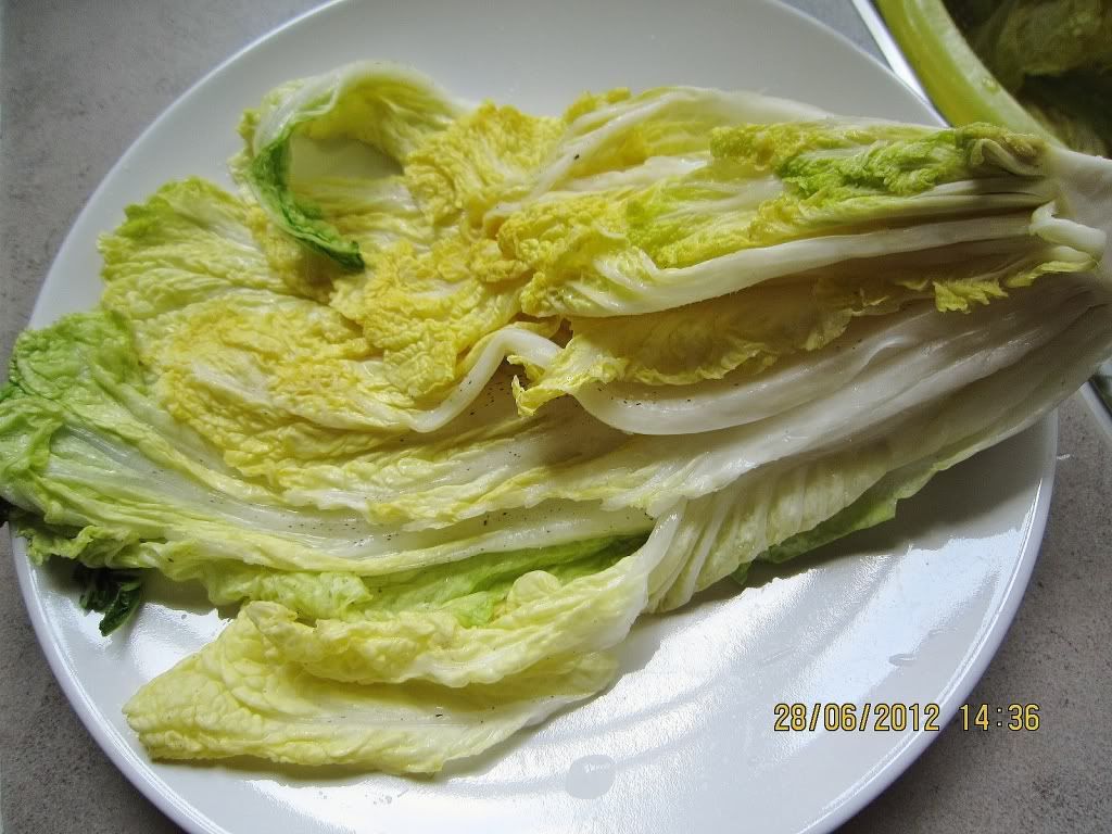 刚刚爬过之前的帖子,看到大家通常都在疑虑白菜是不是泡在盐水里,在这里我再说明,记得,千万别泡水,泡盐水的脱水过程很慢,而且不理想。记得,用粗盐,1层层的揭开白菜叶,撒上盐,然后放在大的容器里待脱水
