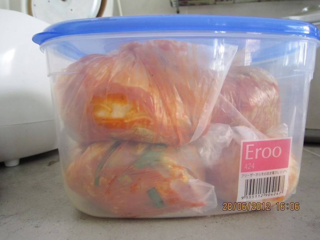 我通常都在中午开始让白菜脱水,做晚餐前做好泡菜,然后隔天早上6点左右就放进冰箱了  |