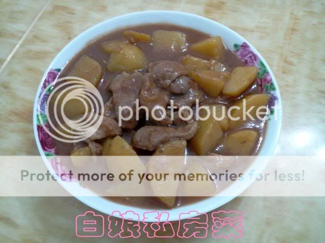 做法:热1汤匙油爆香蒜瓣和洋葱片,下肉片炒香,下调味料,焖焖煮15分钟,下马铃薯,小火中火煮至马铃薯软,下南乳汁,