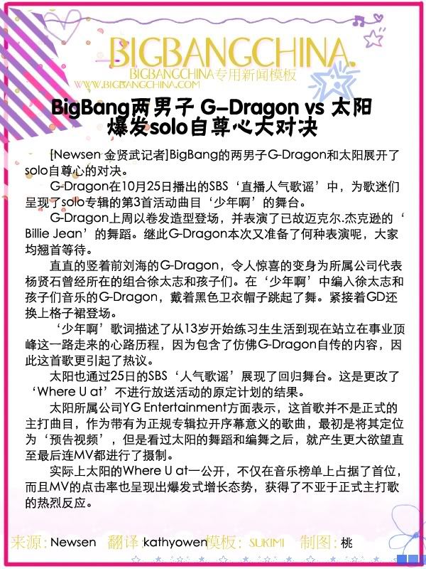 BigBang两男子 G-Dragon vs 太阳 爆发solo自尊心大对决