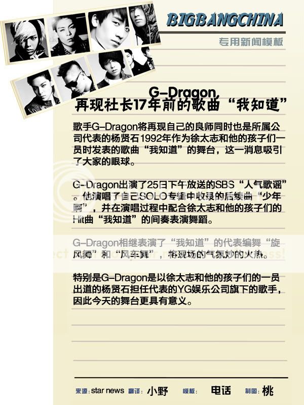 G-Dragon,再现社长17年前的歌曲“我知道”