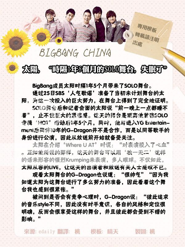 taeyang的舞台,觉得加上舞蹈,唱live真的很辛苦~~