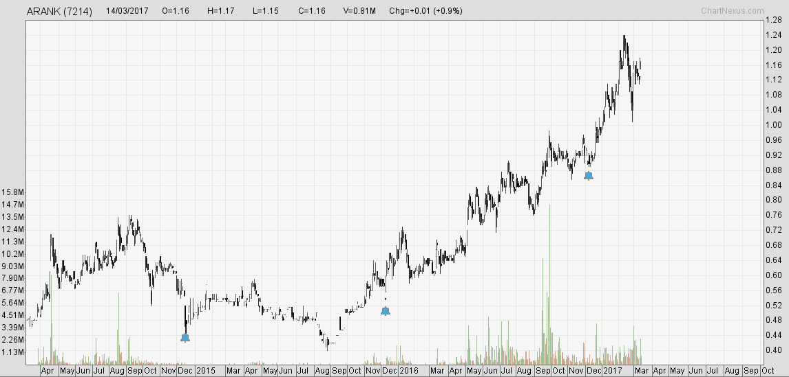 If you had followed me thoroughly, I am sure you would not have miss this wonderful piece of company that I had highlighted which will be the beneficiaries of the use of aluminium in the automotive industry. And to point out, I had highlighted on Arank at a freaking cheap price of 67 cents on 3rd May 2016 !!! Yes, a freaking cheap price of 67 cents, because Arank is now trading at RM 1.16. That is almost a 100% gain in the coming days, not counting the dividend received.