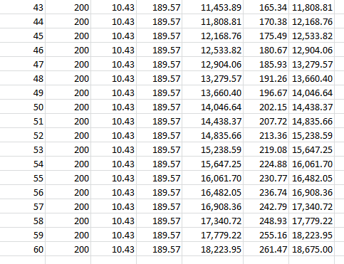 好像照你的方程式算,60期後的確有她說的數目,是最樂觀的預算案還是很難得到的結果? |