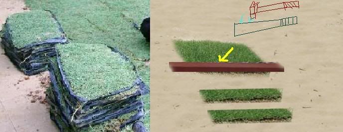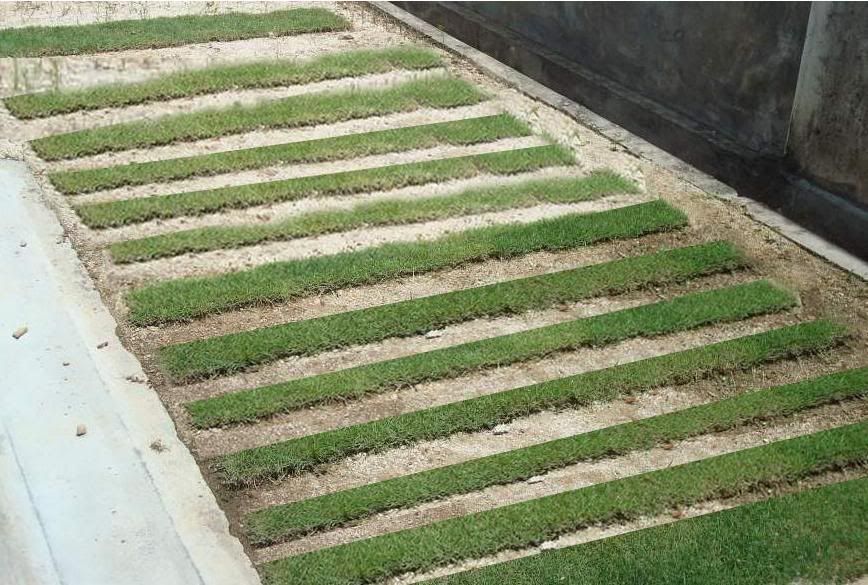 把分割成一样尺寸的carpet草安置在刚好一样大小的草槽里头.