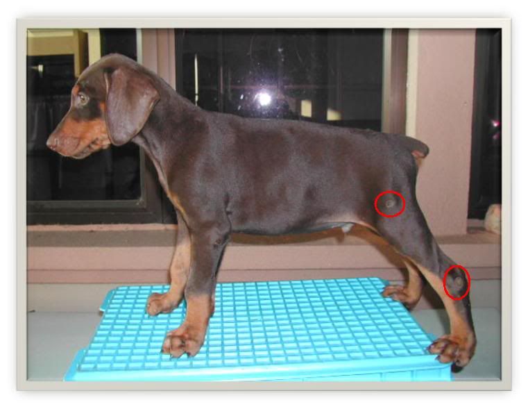 很久没上来了。这是我家杜宾生的小狗。请问他后腿的两个疤痕会好的吗?为什么会这样?