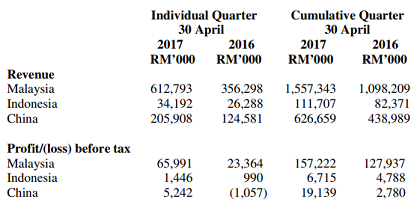 值得一提的是,VS INT这家子公司原本一直都蒙受亏损,因此导致部分部分大马的盈利被抵消。然而,该子公司最近开始转亏为盈,并交出交出1552万港币的盈利。