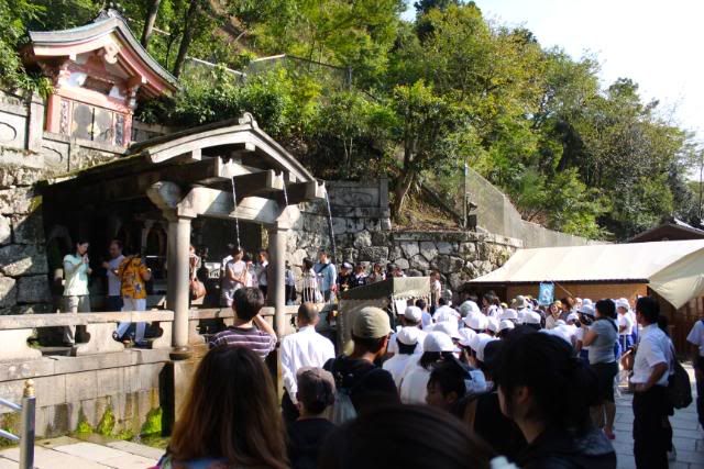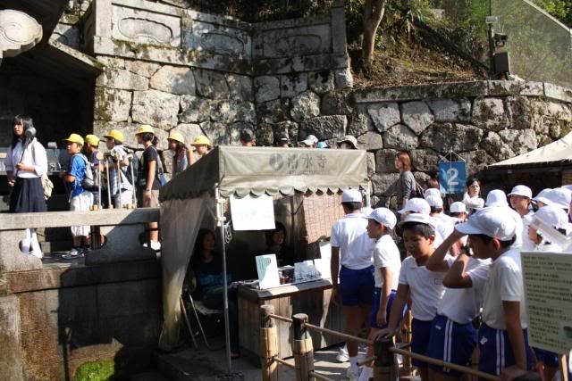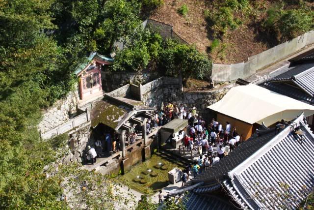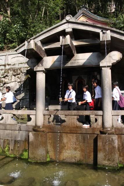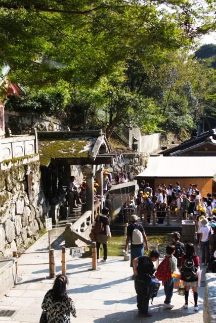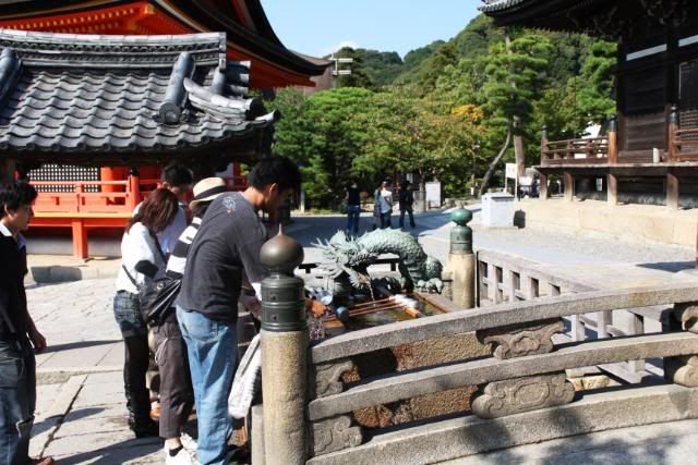 1. 右手拿着放置在手水舍的水杓, 舀一瓢水, 由掌心向指头淋下, 将左手洗净