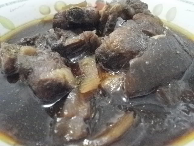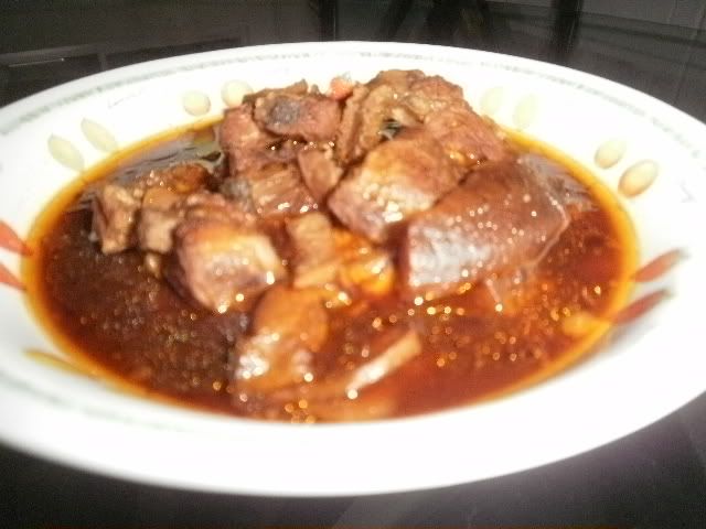 不过我妈的没放番茄汁,直接拿黑醋一直焖,到收汁为止,所以是黑色的~