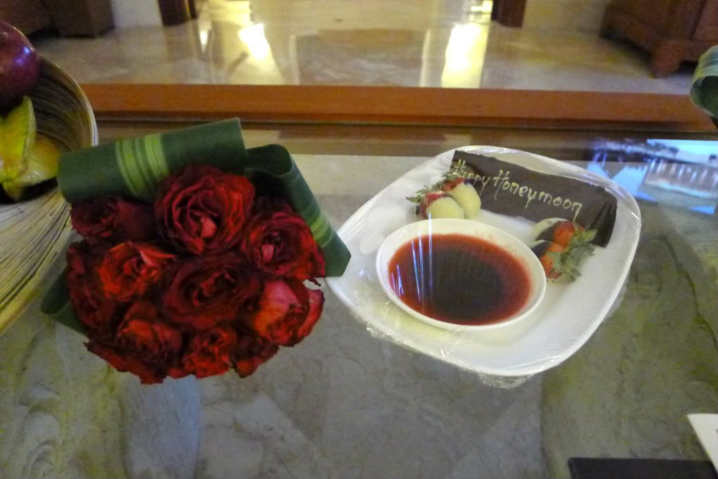 因为我们是来度蜜月的,酒店就送了我们一束鲜花还有甜点,老婆是几开心一下咯~~[img] [/img] [img] [/img] |